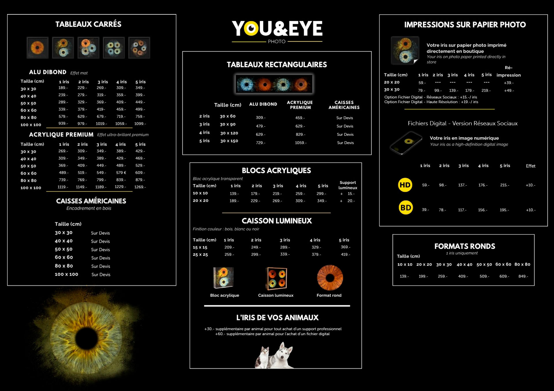 Nous proposons une large sélection de services en photographie d’iris, depuis les portraits simples jusqu’aux œuvres artistiques sur mesure. Découvrez notre expertise et nos offres en visitant notre boutique.