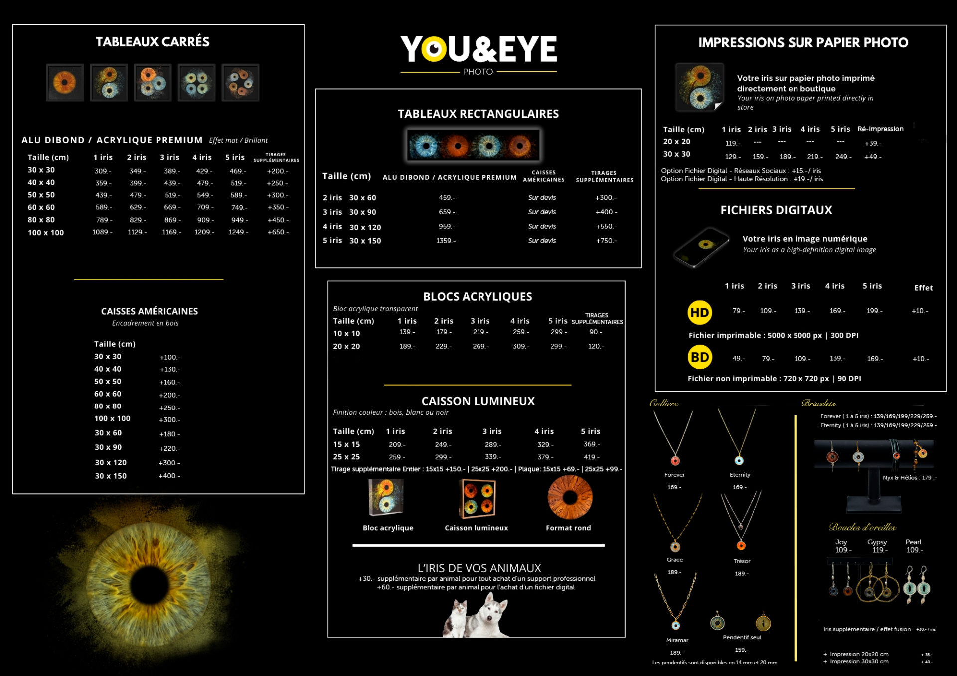 Nous proposons une large sélection de services en photographie d’iris, depuis les portraits simples jusqu’aux œuvres artistiques sur mesure. Découvrez notre expertise et nos offres en visitant notre boutique.
